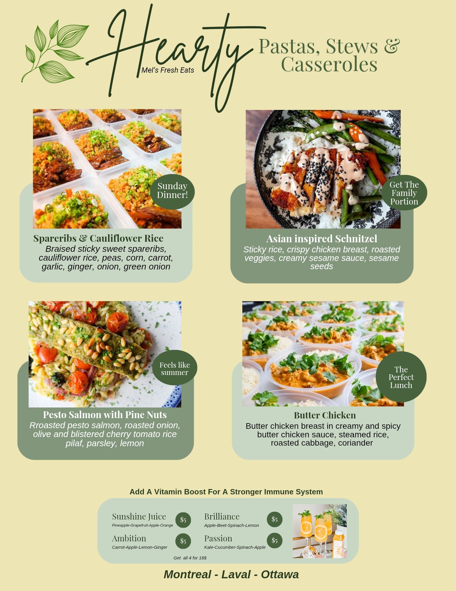 Choose from the menu items and place your order. We will confirm by email and send instructions for your payment. Please Note that the cutoff will be Thursday Novenber 20th at 8:00pm